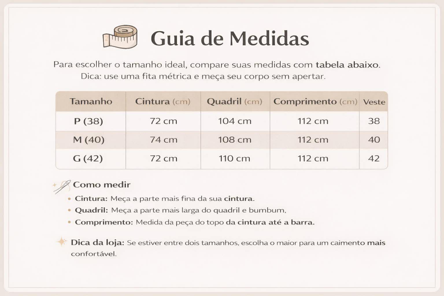 Tamanhos: P(36-38) , M( 38-40 ) e G. ( 40-42 )